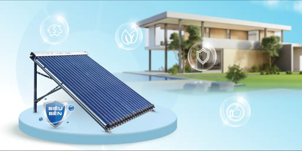 - Hiệu suất hấp thụ cao và tổn thất nhiệt thấp cho phép làm nóng nước hiệu quả ngay cả trong điều kiện trời ít nắng hoặc khí hậu lạnh.