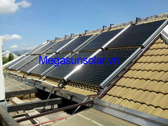 Giàn máy nước nóng năng lượng mặt trời ống chân không Megasun + Bơm Nhiệt Công Nghiệp Megasun