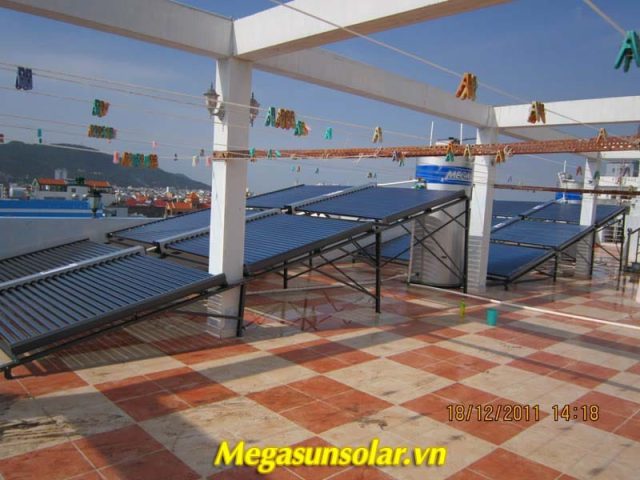 hệ thống nước nóng năng lượng mặt trời ống chân không MEGASUN công suất 3000L/ngày.