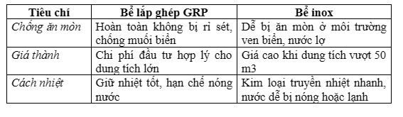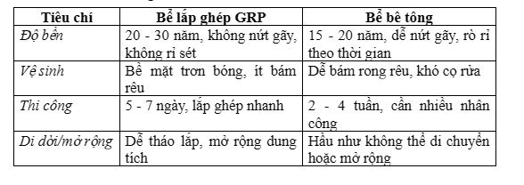 So sánh bể nước lắp ghép GRP Megasun với các loại bể khác