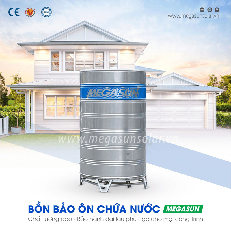 Lắp đặt bồn inox nước nóng Megasun 2000 Lít (2m³) Megasun BBO-2000-KCA-D