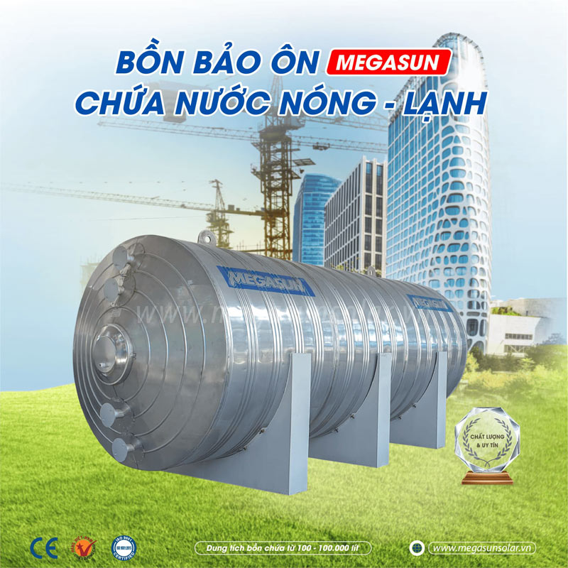 Bồn bảo ôn Megasun không chỉ đáp ứng nhu cầu lưu trữ nước nóng mà còn đảm bảo an toàn, độ bền và tính ổn định lâu dài nhờ được sản xuất theo hệ thống tiêu chuẩn khắt khe: