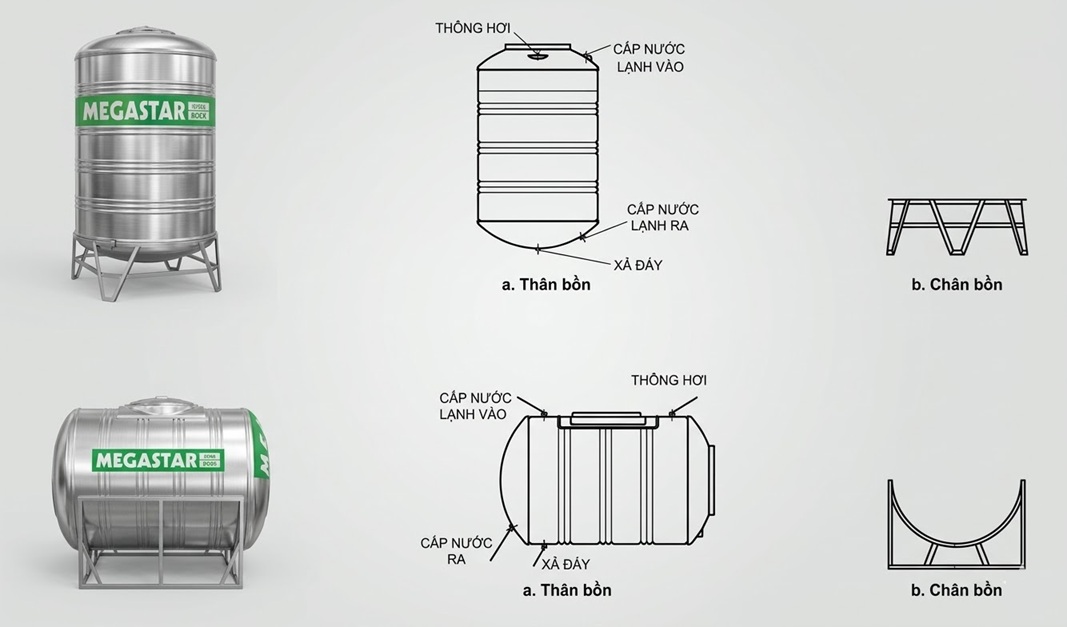 Chi tiết thông số kỹ thuật bồn nước Megastar Eco 500L