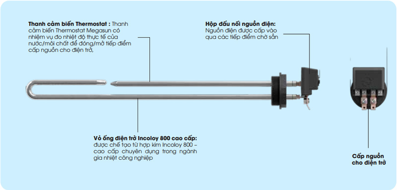 Cơ chế hoạt động của điện trở đun nước Incoloy 800 Megasun MGS-R5K-EU